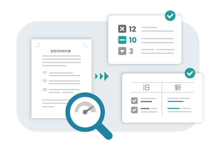 テキスト変更点をピンポイントで特定してサマリ出力。新旧対照表も簡単に自動生成が可能で、レビュー時間を大幅に短縮します