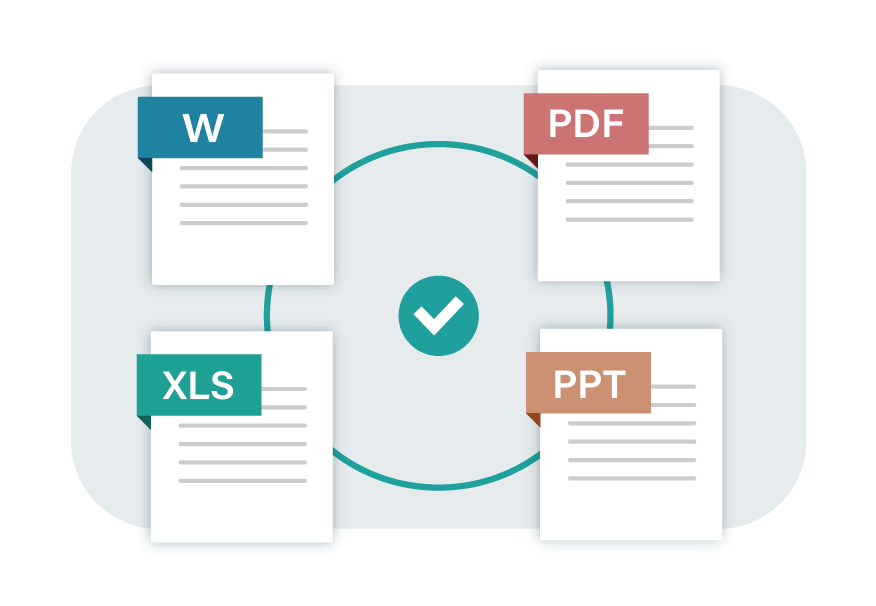 Word / PDF / Exel / PPTに対応。ファイル形式やバージョンを横断してデータ比較を瞬時に行うことができ、ファイル全体だけでなくパーツのみの比較も簡単にできます